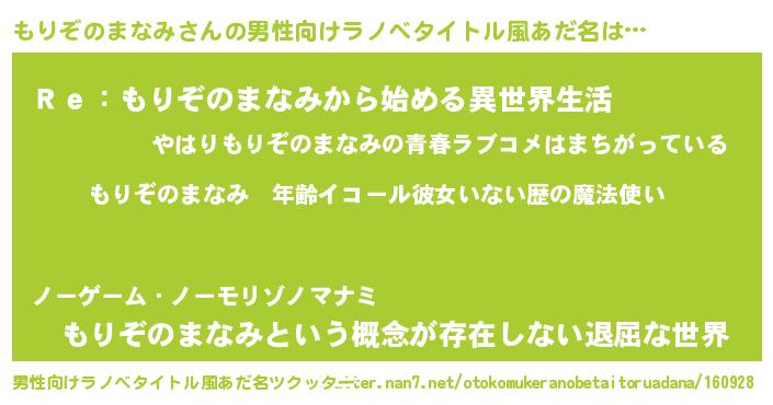 | 女子向けラノベタイトル風あだ名 | 『もりぞのまなみの玉の輿計画!』 |