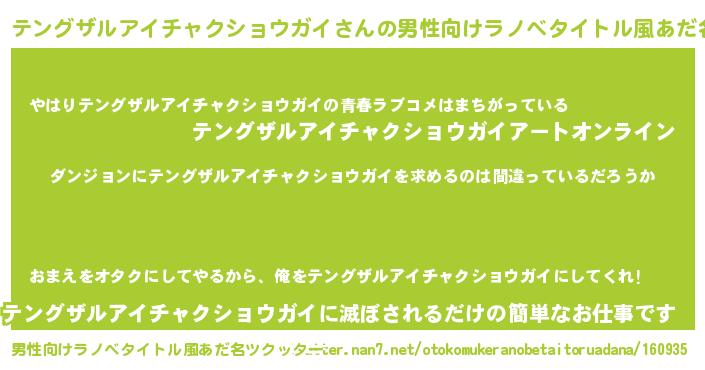 | 女子向けラノベタイトル風あだ名 | 『テングザルアイチャクショウガイは平凡を望む』 |
