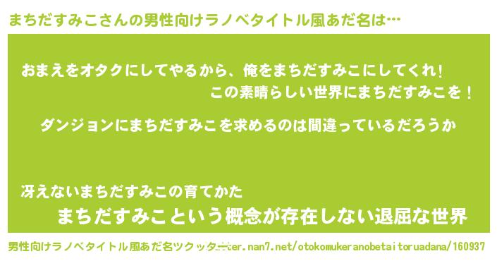 | 胡散臭い通販商品みたいなあだ名 | 『信頼と実績のネックレス…その名も「まちだすみこ」』 |