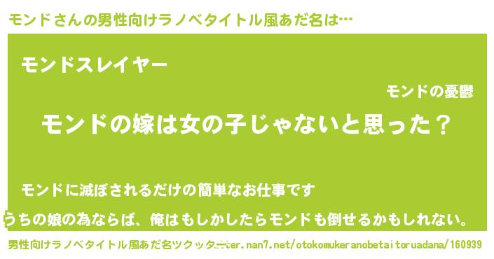 | 女子向けラノベタイトル風あだ名 | 『モンド様がみてる』『モンドの婚約者』 |