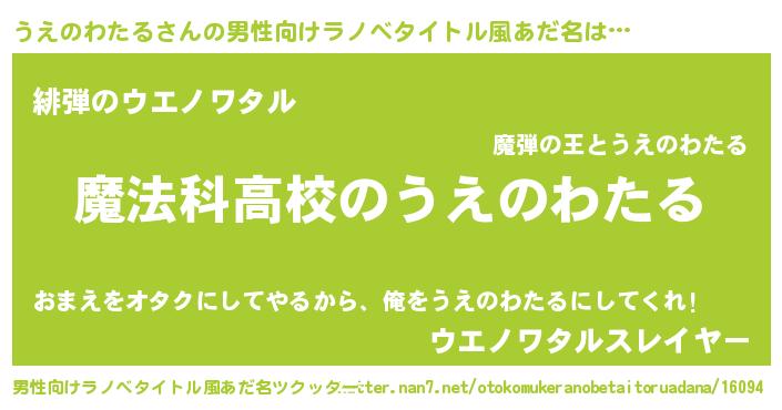 | 女子向けラノベタイトル風あだ名 | 『うえのわたるなんてお断りですっ。』 |