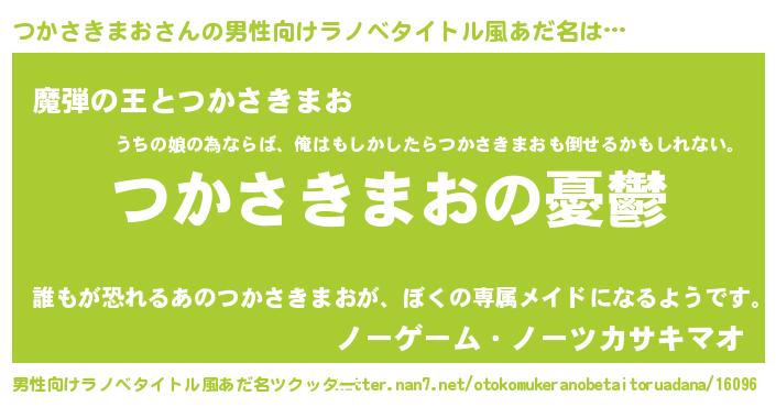 | 胡散臭い通販商品みたいなあだ名 | 『モテモテ間違いなし霊験あらたかなお札…その名も「つかさきまお」』 |