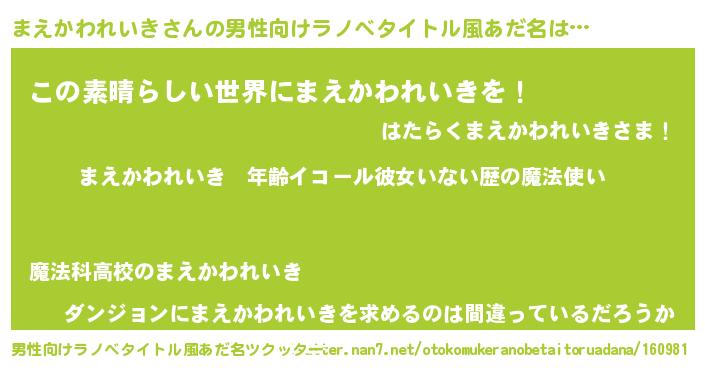 | 胡散臭い通販商品みたいなあだ名 | 『あなたにだけ特別に提供する100年もののヴィンテージワイン…その名も「まえかわれいき」』 |