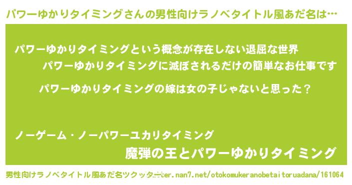 | 女子向けラノベタイトル風あだ名 | 『パワーゆかりタイミングの卵を拾いまして』 |