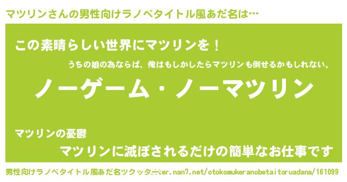 | 胡散臭い通販商品みたいなあだ名 | 『お金では代えられないイリジウム磁石…その名も「マツリン」』 |