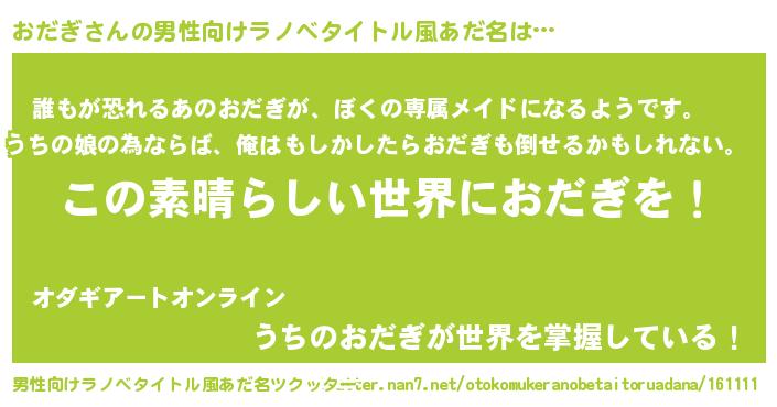| 胡散臭い通販商品みたいなあだ名 | 『あなたにだけ特別に提供する100年もののヴィンテージワイン…その名も「おだぎ」』 |