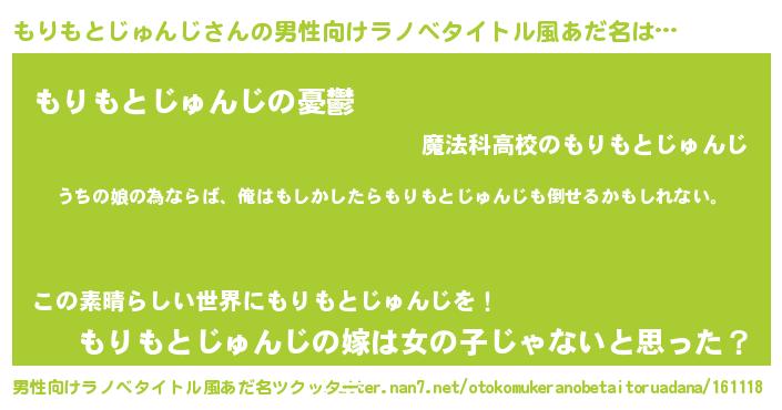 もりもとじゅんじさんの男性向けラノベタイトル風あだ名をツクッター!