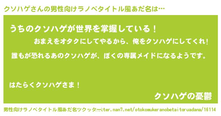 | 胡散臭い通販商品みたいなあだ名 | 『前代未聞の水素水…その名も「クソハゲ」』 |