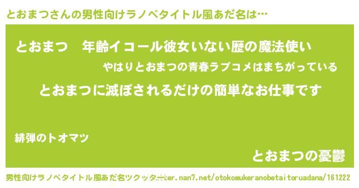 | ヒーロー風カッコイイあだ名 | 『スーパートオマツ』『暗黒騎士トオ』 |