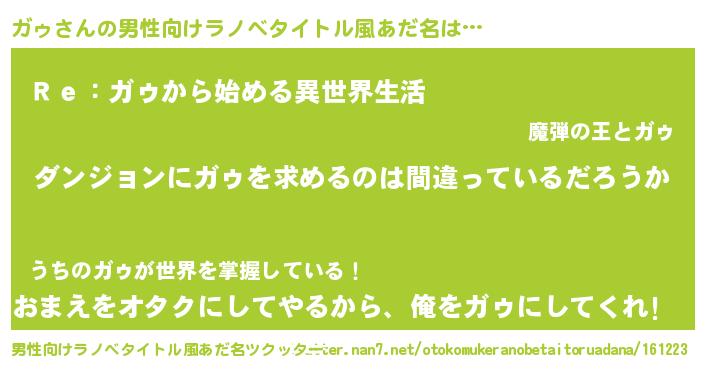 | 女子向けラノベタイトル風あだ名 | 『ガゥは平凡を望む』『闇のガゥ』 |
