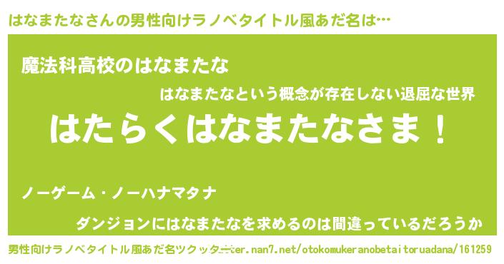 | 胡散臭い通販商品みたいなあだ名 | 『テレビで話題の高麗人参…その名も「はなまたな」』 |
