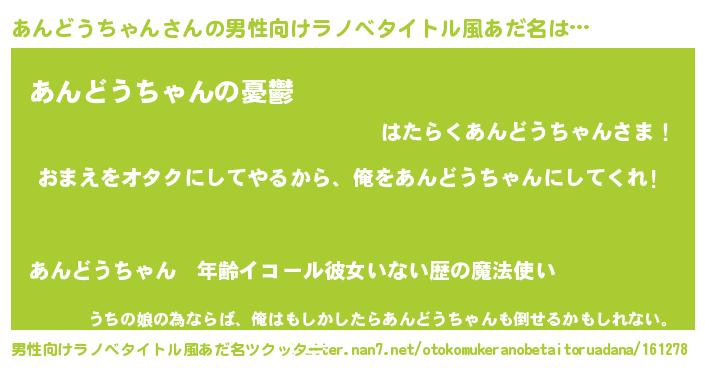 | 市区町村名 | 『あん島市』『西あんどうちゃん区』 |