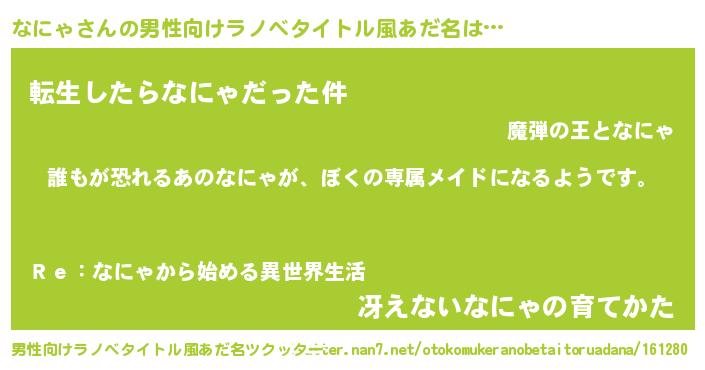| 女子向けラノベタイトル風あだ名 | 『異世界でカフェなにゃを開店しました。』 |