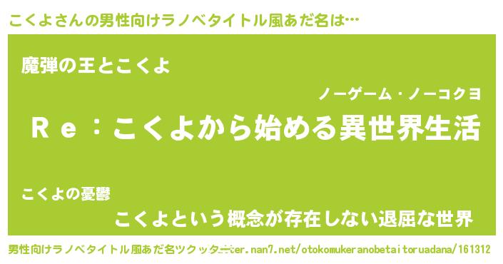 | 女子向けラノベタイトル風あだ名 | 『こくよストレイドッグス』 |