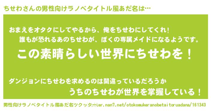 | 意味不明あだ名 | 『住所不定無職ちせわ(14歳)』 |