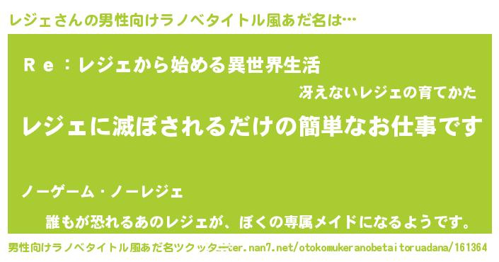 | 意味不明あだ名 | 『自称レジェ』『永久保存レジェ』 |