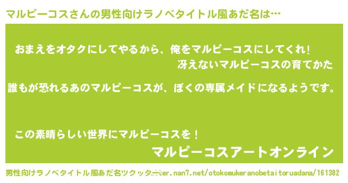 | 胡散臭い通販商品みたいなあだ名 | 『来世でも幸せになれる健康食品…その名も「マルピーコス」』 |