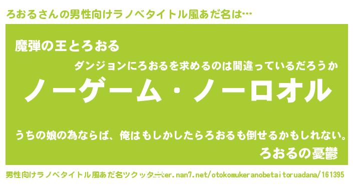 | ヒーロー風カッコイイあだ名 | 『慈愛の使者ろおる』『仮面ロオダー』 |