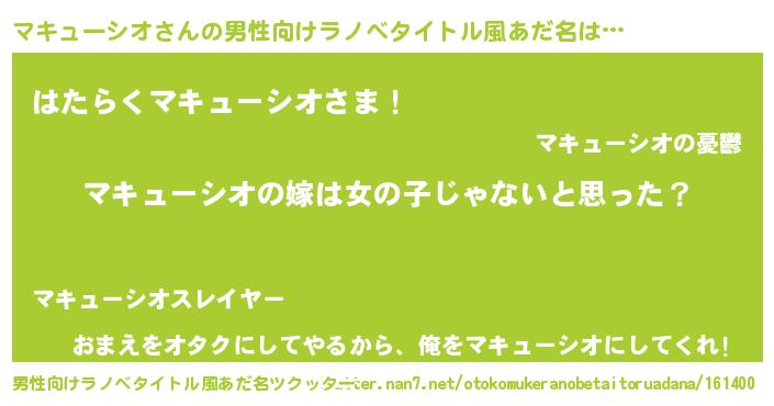 | 女子向けラノベタイトル風あだ名 | 『マキューシオ様がみてる』 |