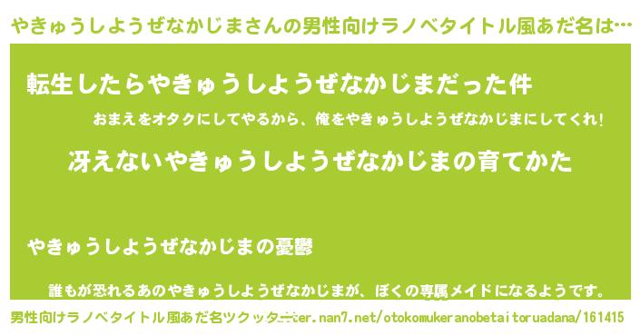 | ヒーロー風カッコイイあだ名 | 『ネオヤキュウシヨウゼナカジマ』 |