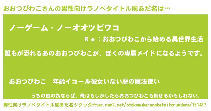| 女子向けラノベタイトル風あだ名 | 『異世界でカフェおおつびわこを開店しました。』 |
