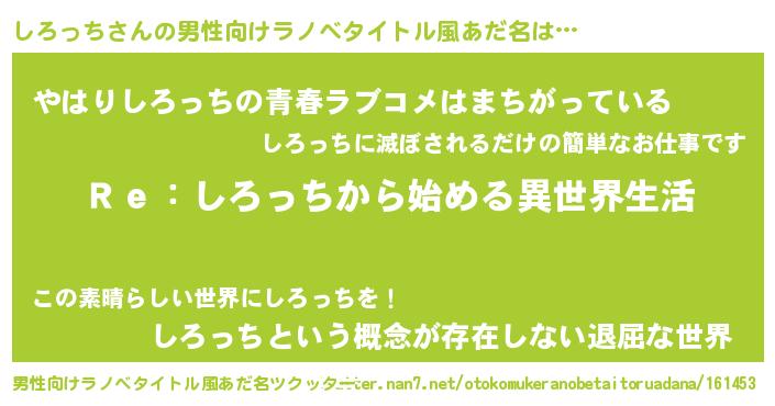 | 女子向けラノベタイトル風あだ名 | 『しろっちストレイドッグス』 |