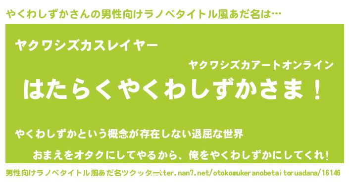 | 胡散臭い通販商品みたいなあだ名 | 『お金では代えられないマグネット磁石…その名も「やくわしずか」』 |