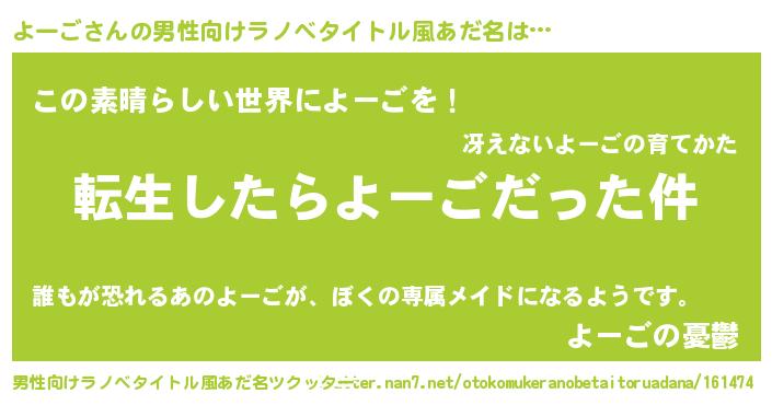 | ヘコむあだ名 | 『よーっふぃ~』『よーご(遠い目)』 |