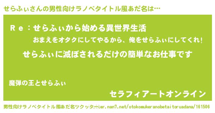 | 意味不明あだ名 | 『自称せらふぃ』『ペロリンせらふぃ』 |