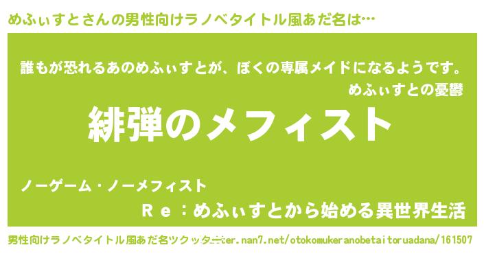 | 恥ずかしいあだ名 | 『めふちん』『メフィストデラックス』 |
