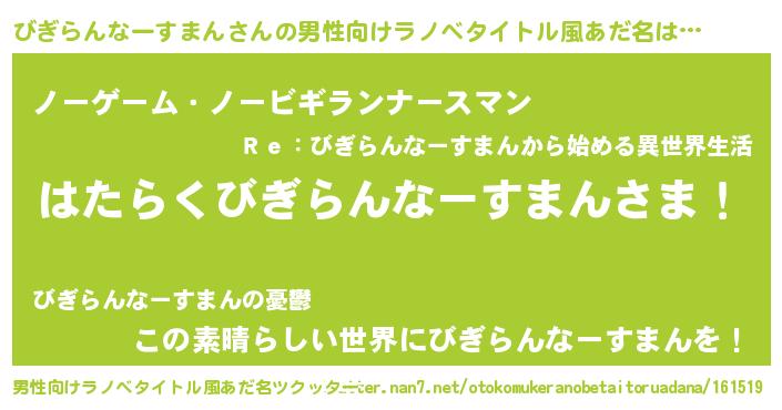 | 欧米人風あだ名 | 『アンジェラ・びぎらんなーすまん』 |