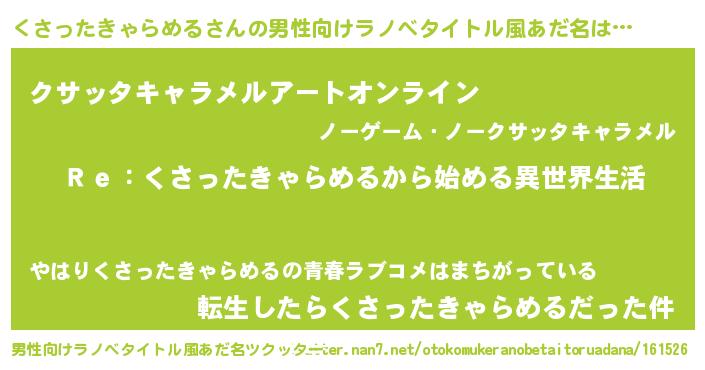 | 胡散臭い通販商品みたいなあだ名 | 『テレビで話題の冬虫夏草…その名も「くさったきゃらめる」』 |