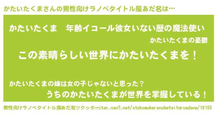 | 意味不明あだ名 | 『住所不定無職かたいたくま(89歳)』 |