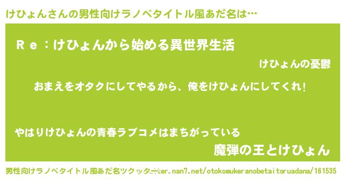 | 女子向けラノベタイトル風あだ名 | 『けひょん恋絵巻』『闇のけひょん』 |