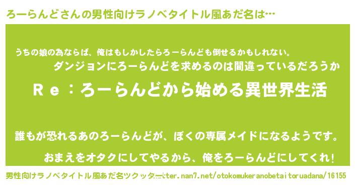 | 意味不明あだ名 | 『自称ろーらんど』『永久保存ろーらんど』 |