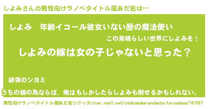 | 胡散臭い通販商品みたいなあだ名 | 『全米が絶賛したサプリメント…その名も「しよみ」』 |