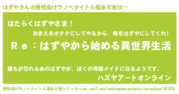| 女子向けラノベタイトル風あだ名 | 『闇のはずや』『首の姫と首なしはずや』 |