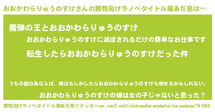 | 女子向けラノベタイトル風あだ名 | 『おおかわらりゅうのすけの玉の輿計画!』 |