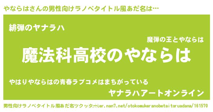 | 女子向けラノベタイトル風あだ名 | 『やならはアンティーク』 |