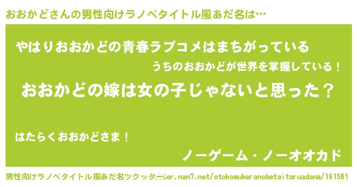| ヘコむあだ名 | 『おおを』『豆乳』『おおかど(苦笑)』 |