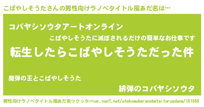 | 女子向けラノベタイトル風あだ名 | 『こばやしそうたの玉の輿計画!』 |