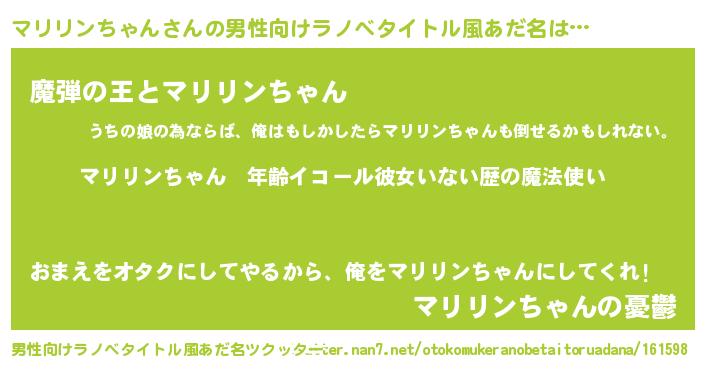 | 女子向けラノベタイトル風あだ名 | 『マリリンちゃんの玉の輿計画!』 |