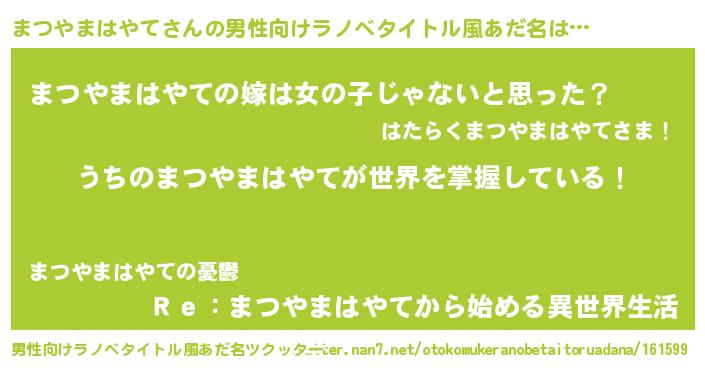 | 胡散臭い通販商品みたいなあだ名 | 『全米が絶賛したサプリメント…その名も「まつやまはやて」』 |