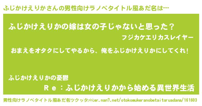 | 女子向けラノベタイトル風あだ名 | 『ふじかけえりか夫妻のなれそめ』 |