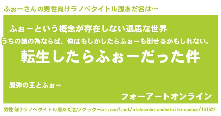 ふぉーさんの男性向けラノベタイトル風あだ名をツクッター!