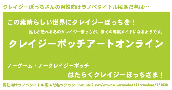 | 胡散臭い通販商品みたいなあだ名 | 『億万長者になれる霊験あらたかなお札…その名も「クレイジーぼっち」』 |