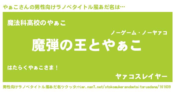 | ヒーロー風カッコイイあだ名 | 『仮面ヤァダー』『サイバー戦士ヤァコ』 |