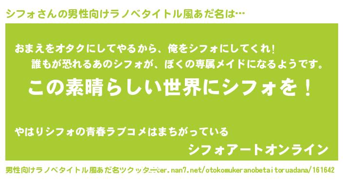 | 意味不明あだ名 | 『住所不定無職シフォ(86歳)』 |