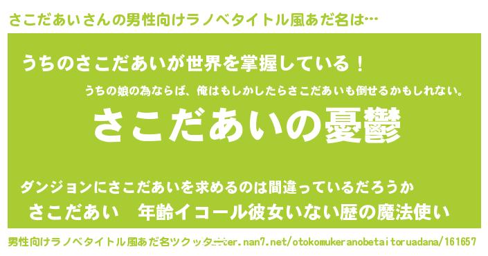 | 女子向けラノベタイトル風あだ名 | 『(仮)さこだあいのやんごとなき事情』 |