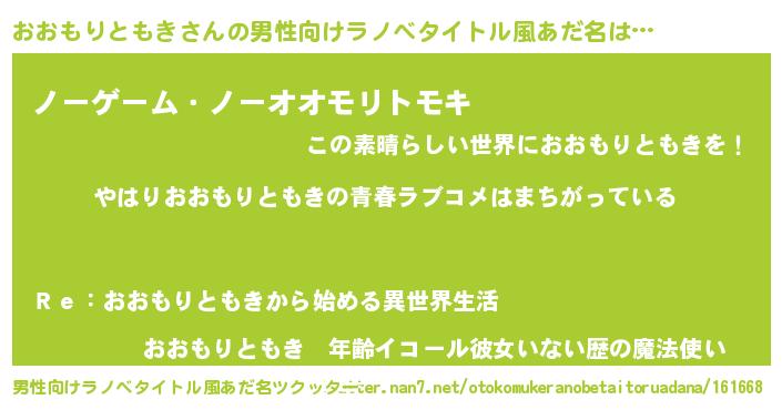 | 女子向けラノベタイトル風あだ名 | 『おおもりともきの雑貨屋さん』 |